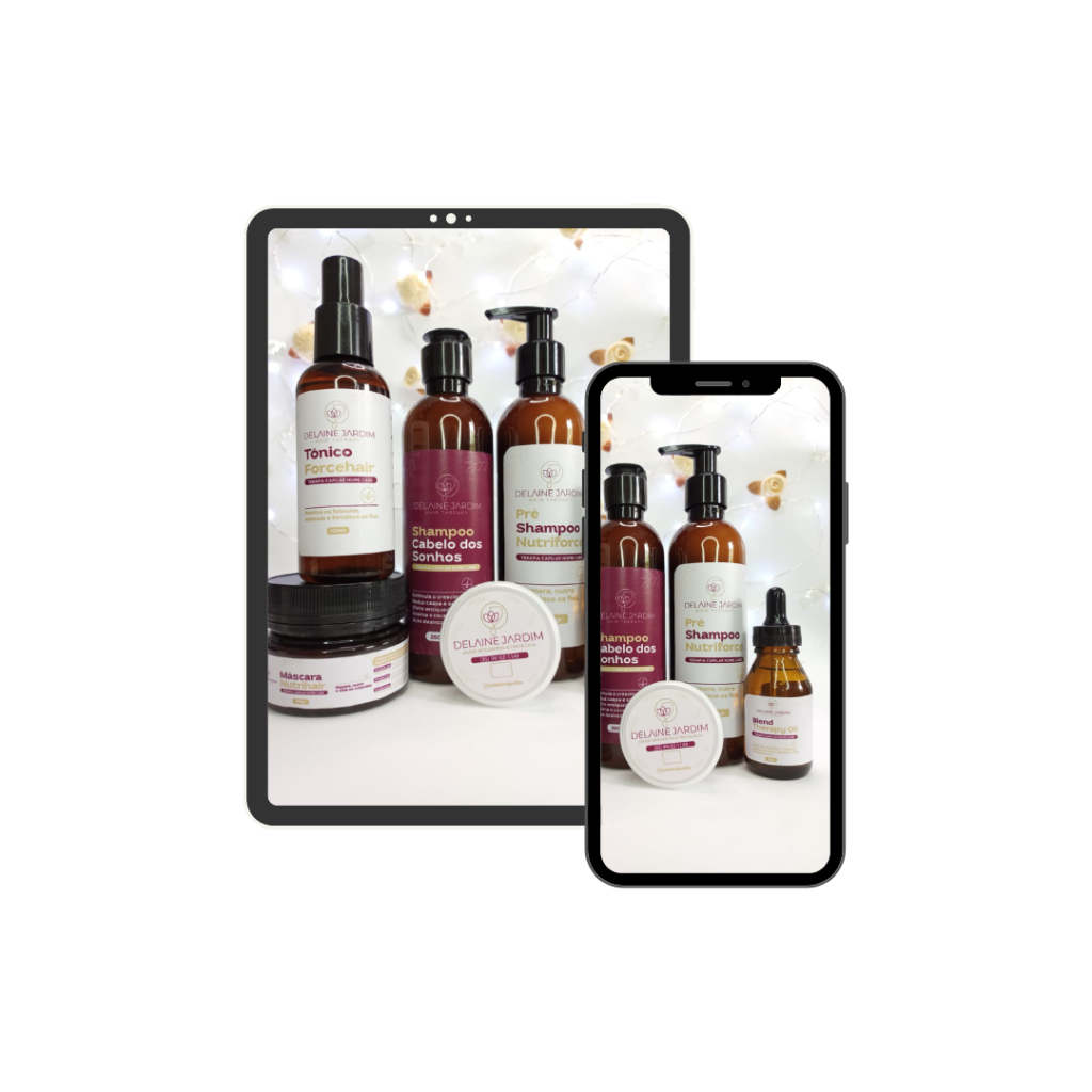 A recuperação completa dos seus fios em casa. Minha linha de cosméticos foi criada para tratar profundamente qualquer dano capilar, acelerar o crescimento dos fios e proporcionar uma rotina de cuidados simples, mas extremamente eficaz com resultados desde a primeira lavagem.